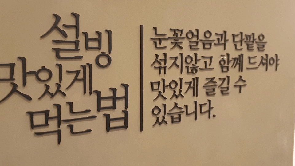 We are here Sulbing cafe 설빙 that serves Korean desserts. This Sulbing cafe is one of the biggest franchised chains in Korea, so you can find it easily!